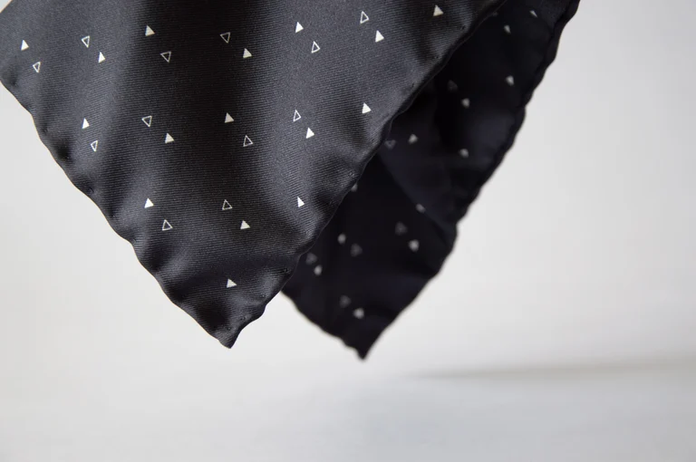 The softness of pure silk against your fingers, the rich navy hue that complements any suit, and the playful yet refined triangles make this pocket square a must-have addition to your wardrobe. Elevate your attire with a touch of luxury and a dash of individuality.